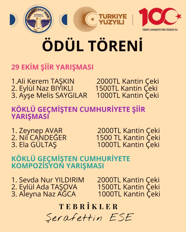 Yarışmalarda dereceye giren öğrencilerimiz tebrik eder, başarılarının devamını dileriz.